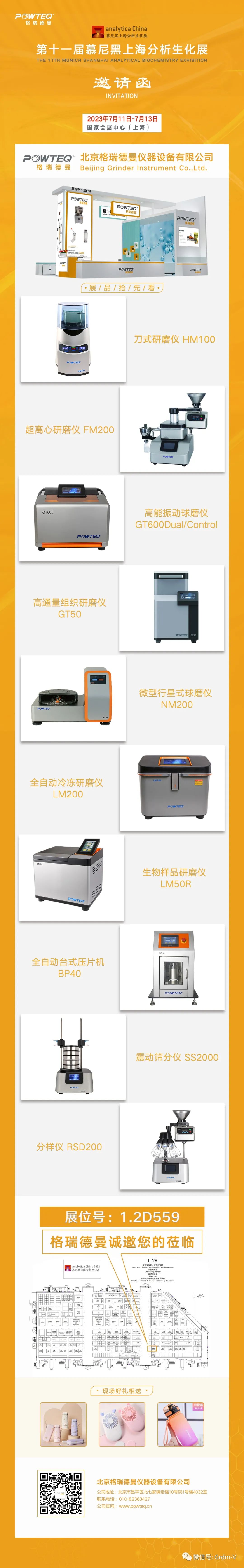 2023??1日至13日,第十一届慕尼黑上海分析生化展将?/span>上海国家会展中心盛大召开。此次展会,格瑞德曼将展出多款旗舰产品和年度新品。届时,我们将与您共话样品前处理技术和应用、/span>