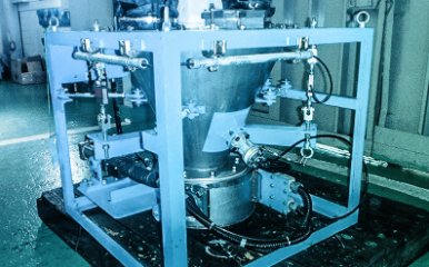 原料由投料装置投入料斗中,当重量达到一定水平时,停止投料并开始卸料、/p>