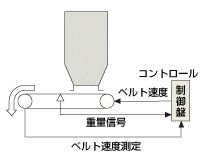检测皮带上的重量和皮带的速度来计算瞬间的输送量,控制皮带速度以匹配设定能力的方法、/p>