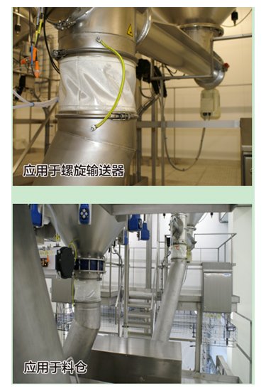 用于粉体输送系统的软连接,起到隔离由于振动、摆动、膨胀及由此引起的位移的作用、/span>