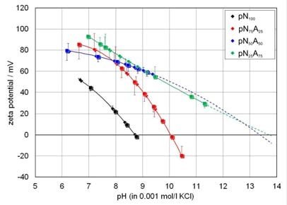 抗菌活性对不同微生物的抑制可由含有小数量的pN25A75 pN50A50及Zeta电位测量得到的IEPs的相关性观察到、/p>