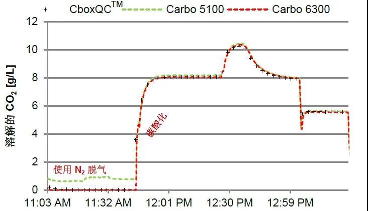 只有安装在脱气罐之后和灌装之前的Carbo 6300 才能监测 CO2 含量。Carbo 6300 不受其他溶解气体的影哌/span>