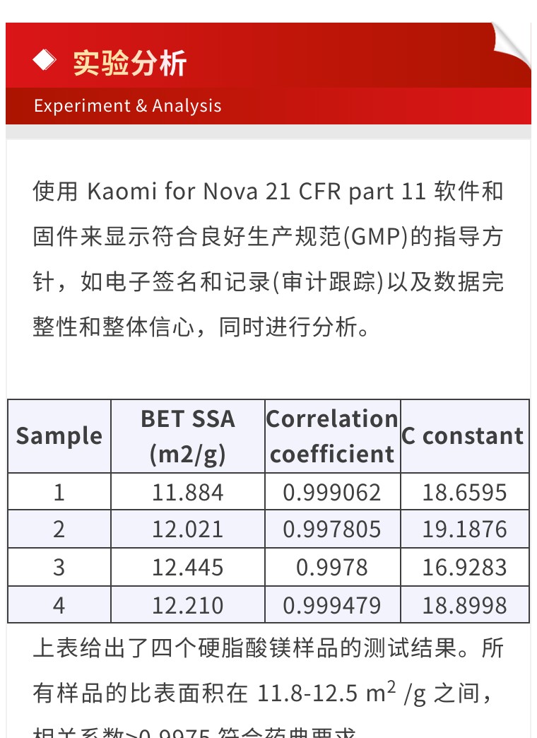 Nova 系列 | 药品中硬脂酸镁比表面积测试方法的建立