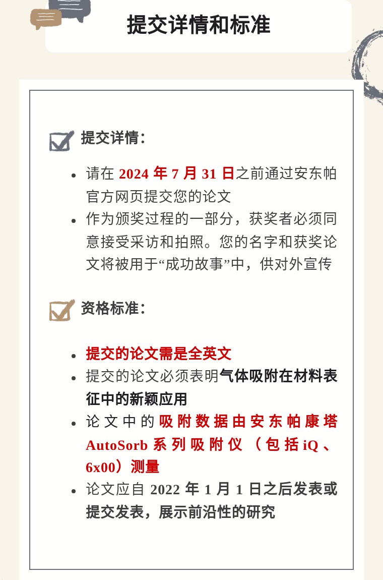 您是否处于利用气体吸附进行材料表征的突破性研究前沿?如果确实如此,则安东帕诚邀您参加著名的Absolutely Autosorb 奖项,以表彰在这个充满活力领域中最具创新性论斆/strong>、/p>