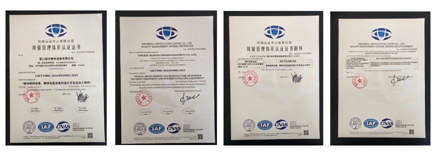此次营口瑞丰粉体设备有限公司获得ISO9001、IAF、CNAS质量管理体系认证,说明其产品质量生产合格,可以完全信任。标志着公司研发及生产体系的标准化、程序化、规范化更上一层楼,对公司的长远发展具有重要意义、/p>