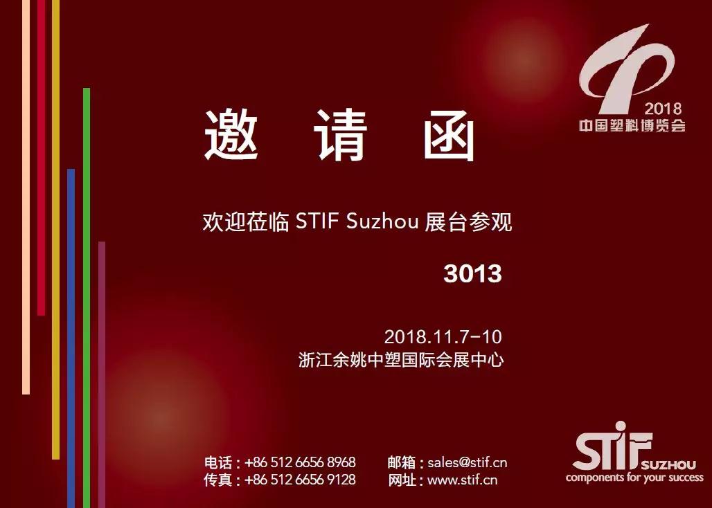 2018中国(余姚)国际塑料博览会暨第二十届中国塑料博览会于11?-10日在浙江余姚中塑国际会展中心隆重举行+strong>斯缇福机械(苏州)有限公号/strong>(股票代码:691677)邀请您参观?018余姚塑料博览会”,展位叶3013、/span>