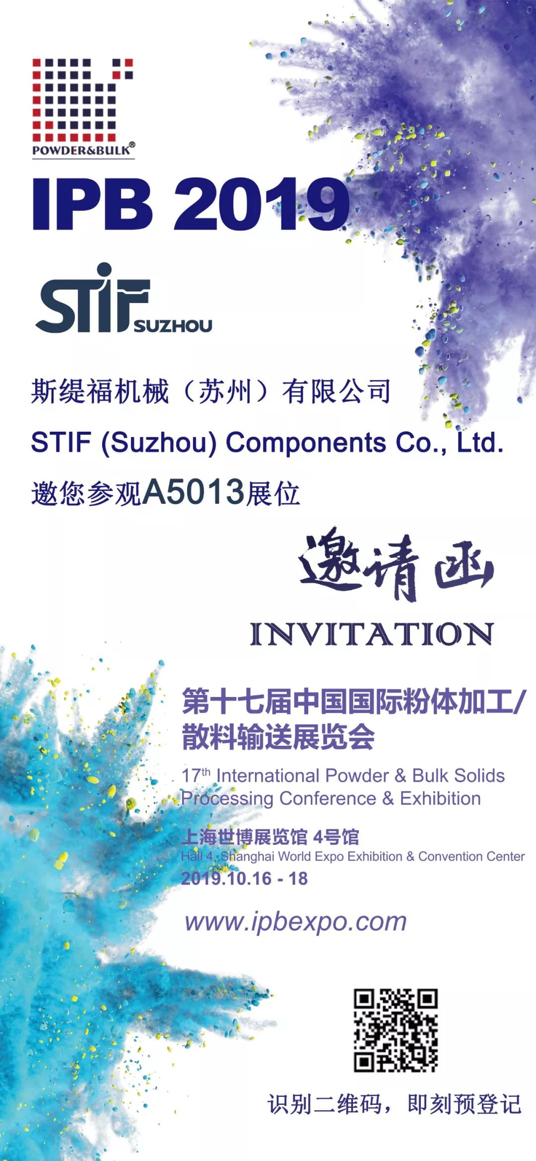 第十七届中国国际粉体加工/散料输送展览会(IPB 2019)定于2019平/span>10朇/span>16-18日举衋/span>,来自粉碎、研磨、筛分、干燥、混合、过滤、输送、包装、测试、安全防爆等领域皃/span>200家粉体展商齐聚上海世博展览馆、/span>