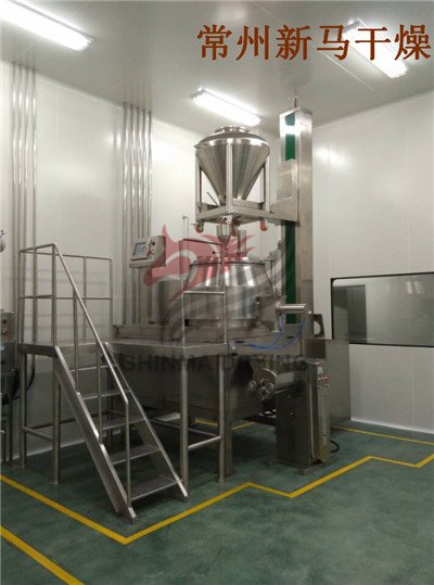 在传统的造粒过程中,每台设备都放置于独立的净化室内,如:湿法混合制粒机和流化干燥机分别在独立的净化室,普通搅拌机和粉碎造粒机在另一个房间。问题是必须提升他们之间的空间,否则不能避免二次污染。但是新马干燥公司的固体制剂生产线可以是封闭运输的,并在净化室内完成全过程,这就避免了二次污染的问题。更加科学,更加合理,更加更加节省空间,同时也符合《优良药物制造手册》的要求。