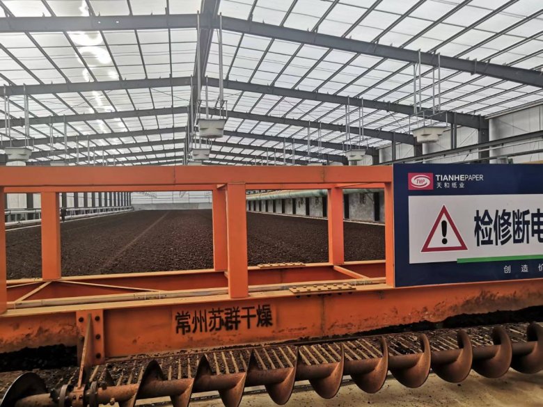 近日,我公司给山东某纸业有限公司生产的一套阳光房污泥烘干系统已正式投入生产,该套设备总占地面积约4000平方,每天处理污泥约200吨左右,污泥含水率从65%烘干?5%左右,热源主要采用阳光和地暖,可实现全天24小时连续生产、/p>