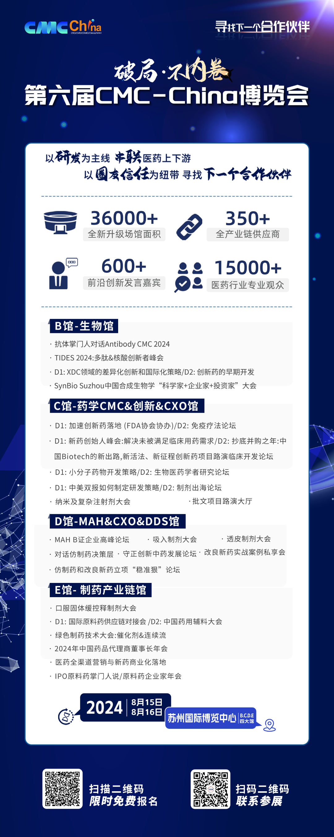 2024??5-16日,在苏州博览中心,将会举办第六届CMC-China中国国际生物&化学制药博览会、/p>