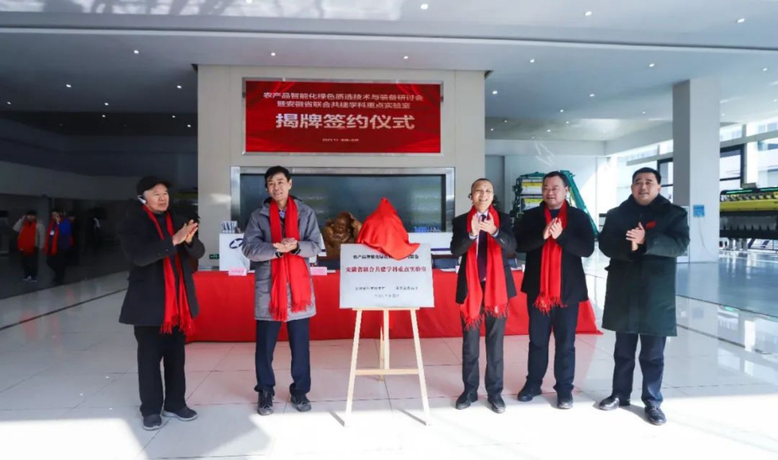 随后,在参观了实验室及产品研发体验中心后,原安徽省农业科学院院长、研究员、博导杨剑波,原农业农村厅一级巡视员、安徽省绿色食品产业发展服务联盟名誉理事长王华,捷迅光电董事长高小荣,安徽省绿色农产品质量安全管理站(绿色食品管理办公室)站长刘成美,捷迅光电常务副总经理陈振林共同为实验室揭牌?/p>