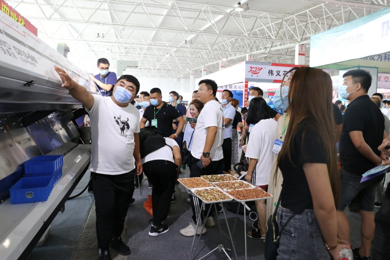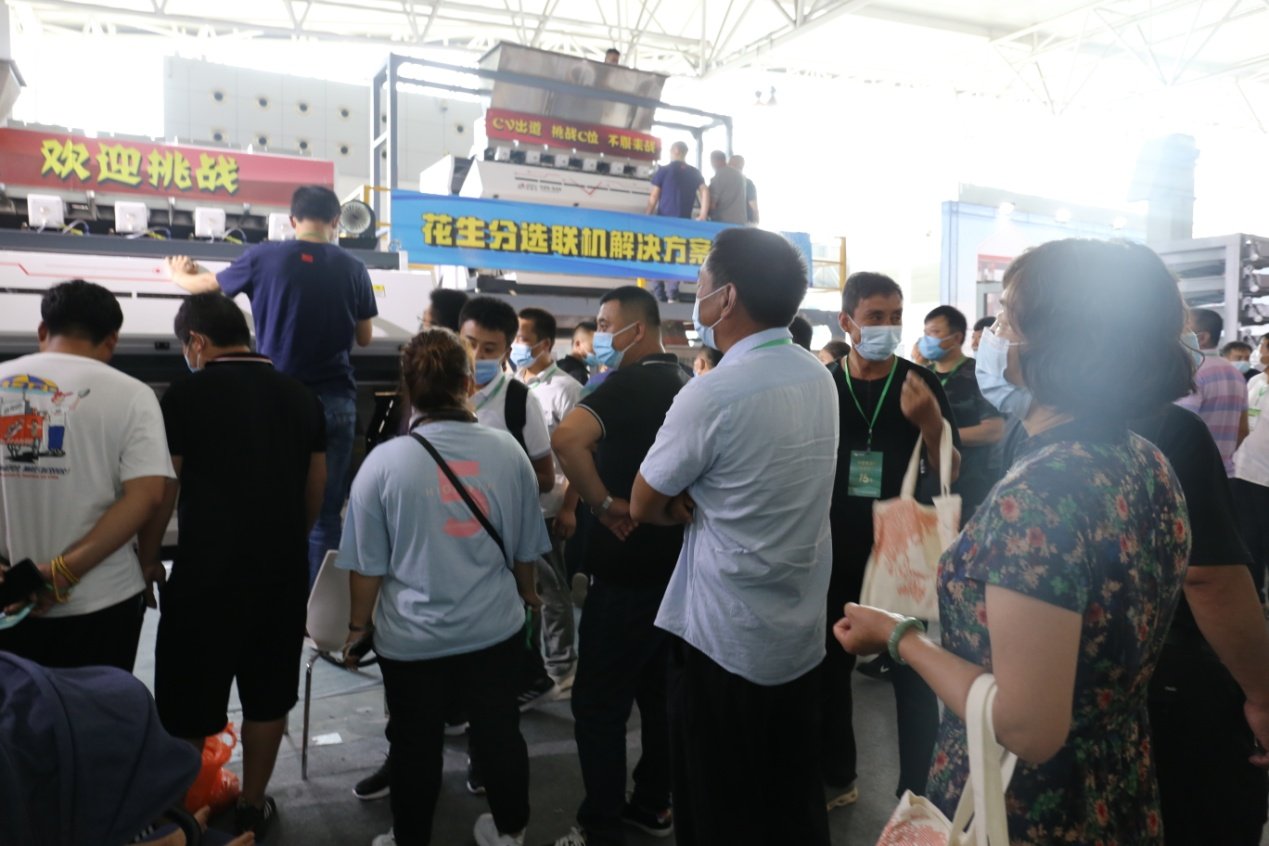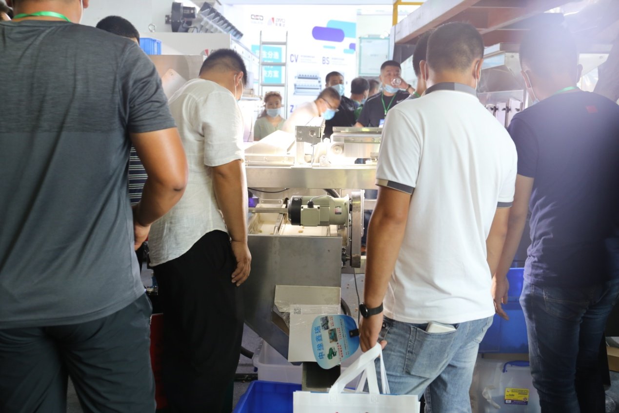 中科光电多功能杂粮色选机采用全新的光路设计,独特的底部抽风除尘系统,不同于以前的色选机,CV系列增加滑槽密度,提高整机产品,兼容红外拓展模块。中科光电工作人员现场色选花生,让参展者能真切感受CV系列色选机的魅力、/p>