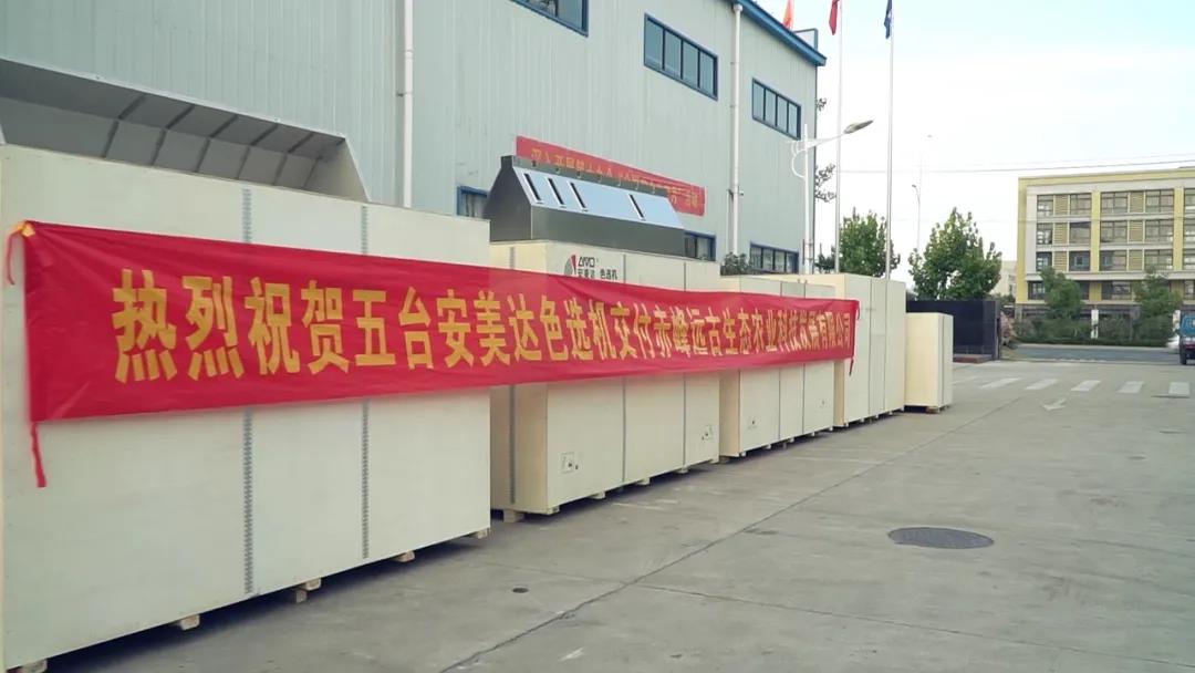 9?日,发往内蒙古赤峰远古生态农业科技发展有限公司?台大?2台杂粮共5台安美达色选机再赴征程、/span>