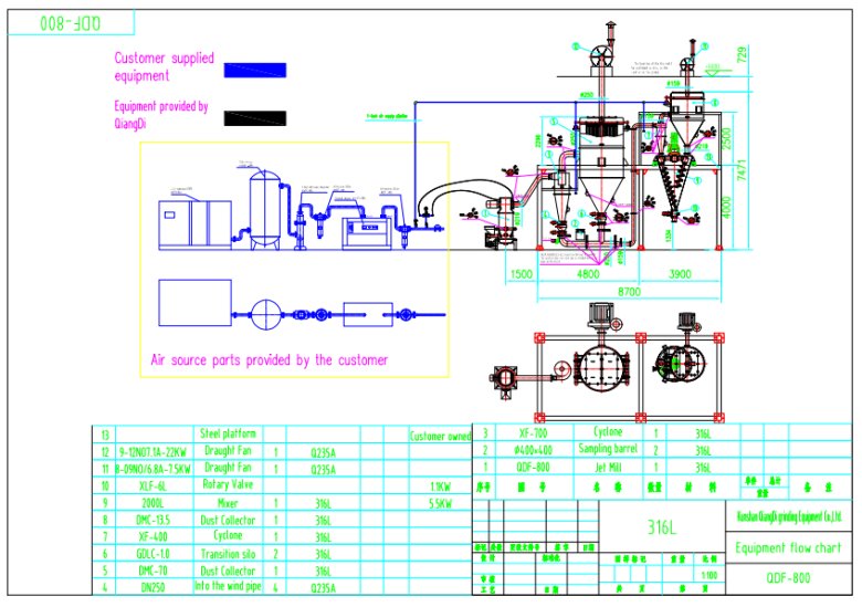 印度GFL公司?017年从我们强迪公司订购了第一条QDF-800气流粉碎生产线,今年又连续订购了我司两条改进型自动化QDF-800气流粉碎生产线,以下为第三条生产线的流程图及设备发货的实拍图、/span>