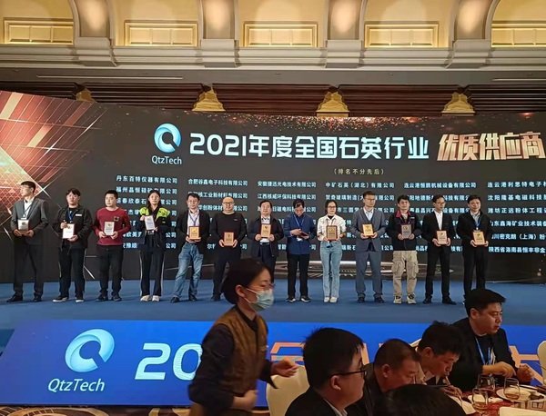 本届第五次全国石英大会颁奖晚会,粉体网对全国生产企业颁发了优质供货商奖、晶球奖,我们谷鑫公司再次被荣膺2021年度全国石英行业“优质供货商”。公司已经连续三年荣获“优质供货商”;谷鑫公司连续两年被评为“全国十佳售后服务奖”;也是色选机行业仅此一家荣获此奖的色选机制造企业;2019年被中国品优网评为“中国矿石色选机十大品牌第一名”,公司系列矿石色选机不仅畅销国内,而且还远销多个国家和地区、/span>