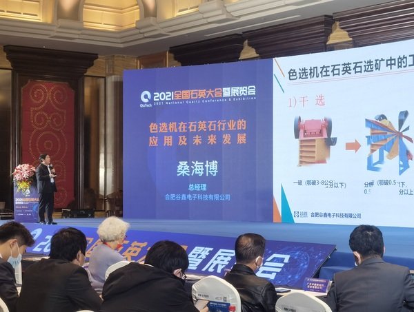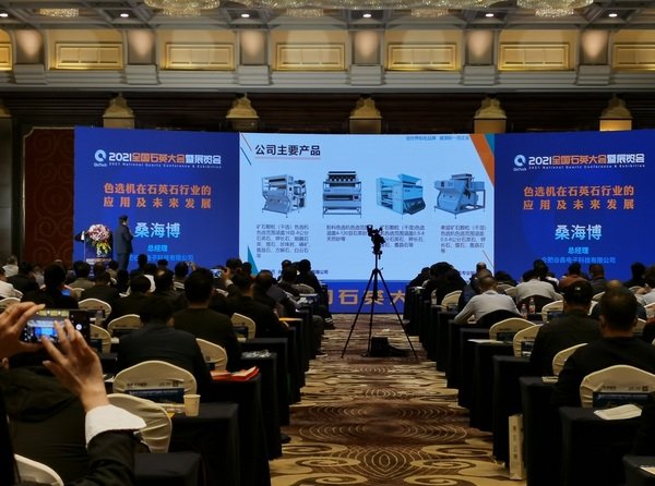 2021?1?8日,由中国粉体网主办的?021(第五届)全国石英大会暨展览会”在江西赣州锦江国际酒店盛大召开!本届大会从行业实际需求出发,从原矿分析、市场定位、尾矿处理等多个方面,探讨石英矿石资源如何实现价?*化,从前沿技术出发,探讨石英砂、硅微粉等产品在众多应用领域的发展前景。本次会议汇聚了石英行业的专家、学者、企业家代表,共?00余人。公司总经理桑海博先生在会上报告的主题是“色选机在石英石行业的应用及未来发展”、/span>