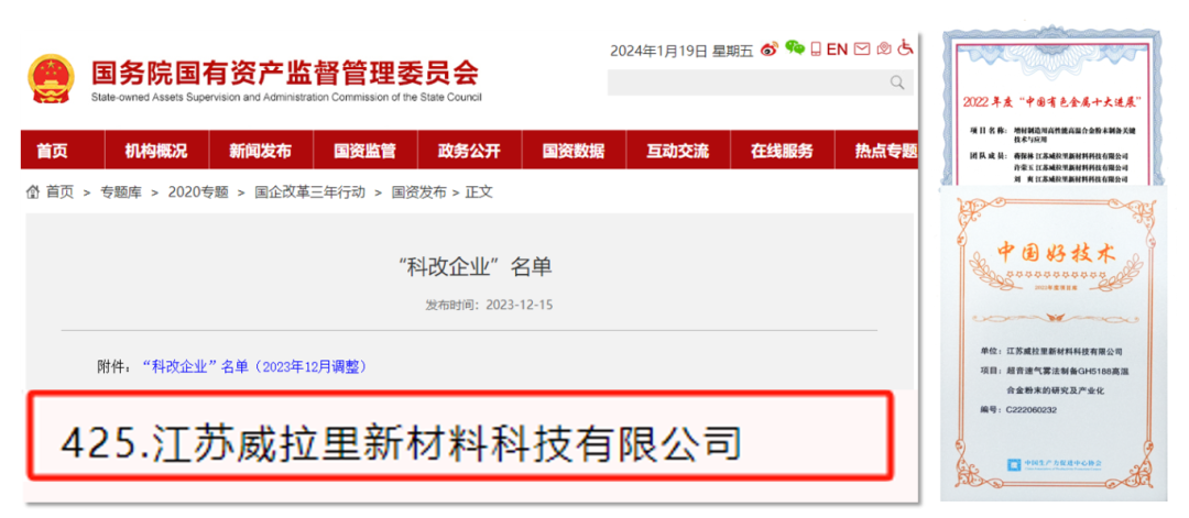 威拉里坚定不移服务制造强国战略,积极开展我国增材制造领域关键材料“卡脖子”技术攻关,2023年,公司承担?项国家级重点研发项目进展顺利?款材料研发取得新突破、部分材料性能国际领先,自主研发设计的全国首台单炉装料?00kg级VIGA装备投产,取得“中国好技术”“中国有色金属十大进展”等13项国字号荣誉资质,获?1项省级以上科技奖项,全年授权发明专?6项、累计授权专?43项,牵头或参与起草国家标?1项、已发布15项,再次入围国家“科改企业”名单、/p>