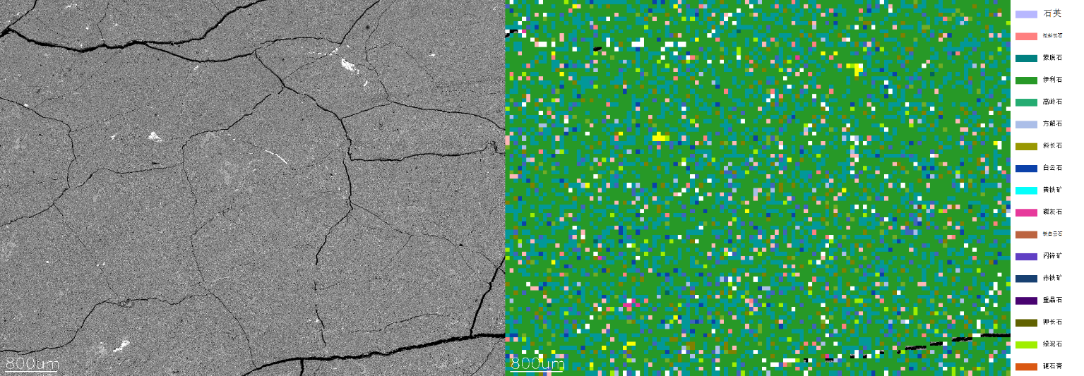 矿物分析对比图举例(左侧为背散射图像、右侧为矿物分析图像(/strong>