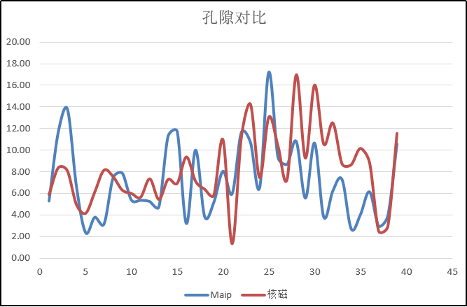 另外,在物性方面,也做了大量的实验数据,并与地质检测中心的核磁测试结果进行了对比。如下图(表)所示,孔隙度在整体变化趋势上也呈现出良好的一致性、/span>