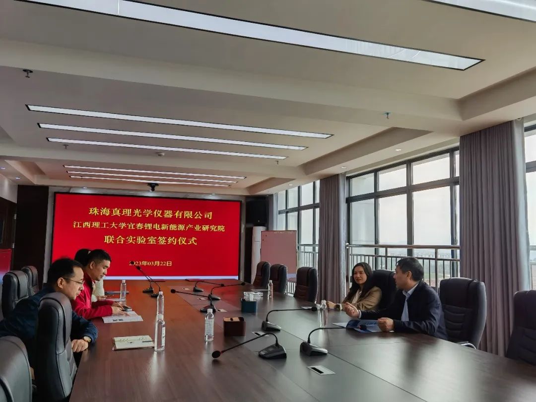 2023??2日下午,江西理工大学宜春锂电新能源产业研究院(以下简称“研究院”)和珠海真理光学仪器有限公司共建联合实验室签约仪式在研究院9楼会议室举行。研究院执行副院长张骞、珠海真理光学仪器有限公司区域经理苏琼分别代表院企在协议上签字。研究院首席专家罗仙平全程参加并致词。他表示,院企共建联合实验室既是研究院建院以来与企业深化合作,发挥各自优势实现共同进步的新举措,也是研究院对外开放,提升实力、推广品牌的新途径,值得肯定。但同时也要求,联合共建实验室不能纸上谈兵、不能流于形式、不能虎头蛇尾,要抓住宜春锂产业链井喷式高速发展期落地做实,做出实效、打出品牌、/span>