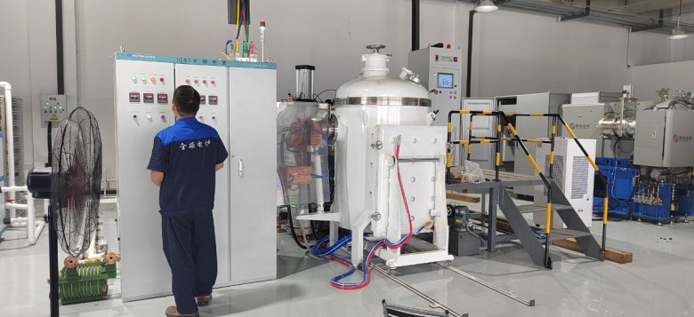 2023??日,我司生产?0KG真空中频熔炼炉落地北京研邦新材料科技有限公司,并成功就位、/span>
