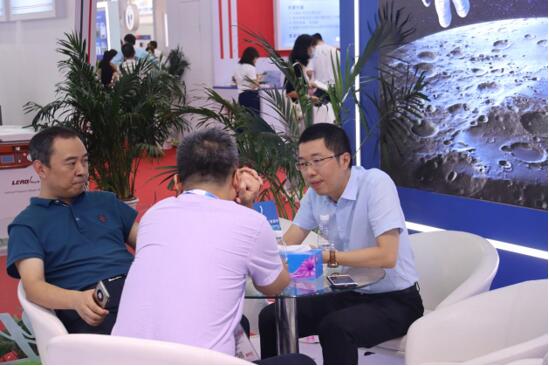 天瑞仪器副总经理黎?右一)与客户洽谈合作