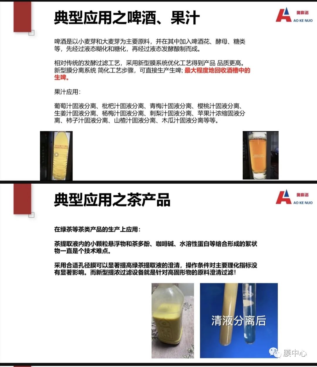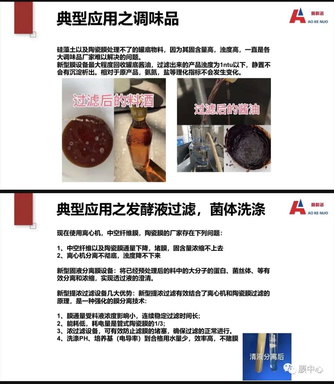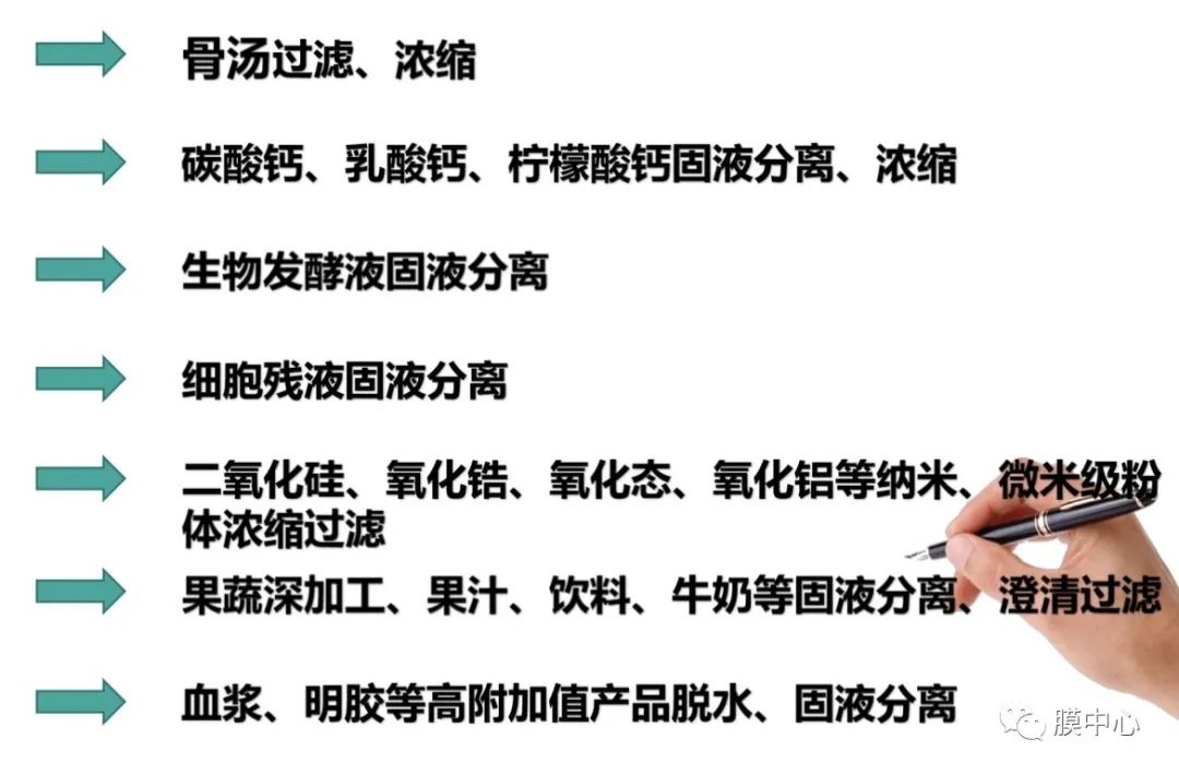 公司已经在制药行业、精细化工行业、新材料、纳米粉体 生物发酵以及食品加工等大规模应用。本公司针对不同应用行业的特点, 进行膜材料设计和工艺过程设计,更具专业化和实用化; 公司技术中心和科研院建有完善的膜表征和应用评价系统,有XRD BET、SEM、孔径分布测定仪、ICP、TOC、IR、HLPC、GC等系列检 测和分析手段;团队与英国帝国理工学院、新加坡国立大学、澳大利 科廷大学、上海交通大学等国内外知名高校建立了长期的合作关系、/p>