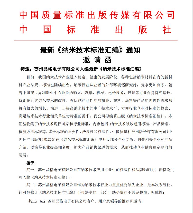 苏州晶格电子有限公司被中国标准出版社邀请参与入编最新《纳米技术标准汇编》参考书籍、/p>