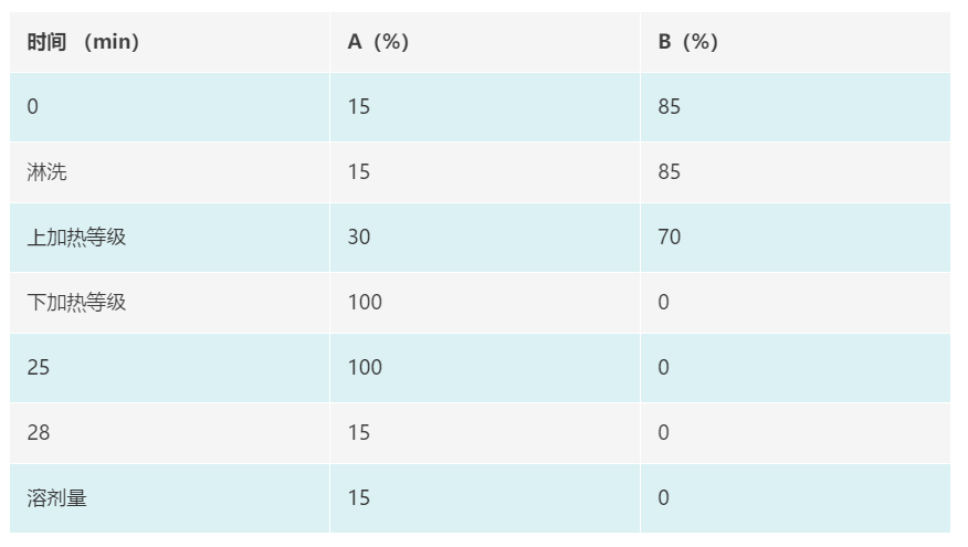 洗脱溶剂:A:乙腈 B:氳/p>