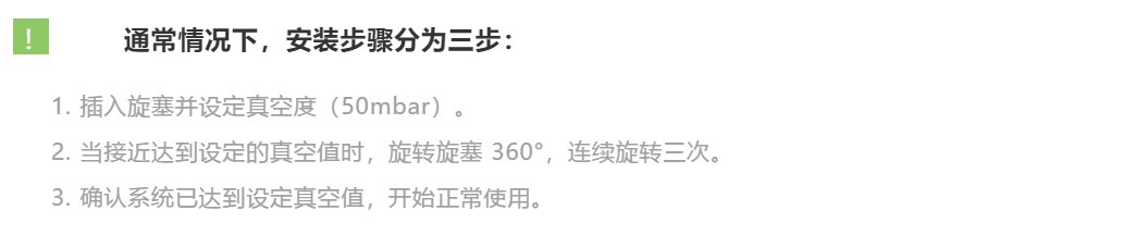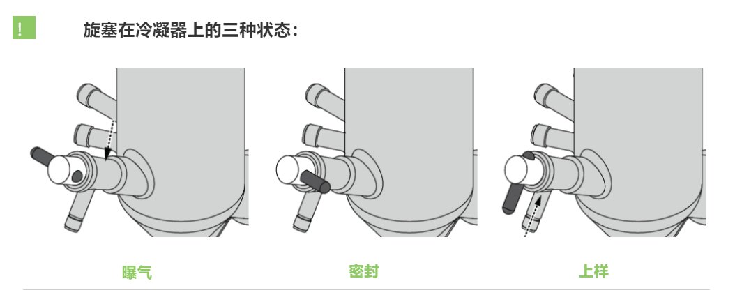 优秀的玻璃加工工艺可以弥补玻璃接口间的缝隙,使得整个旋转蒸发仪系统无需涂抹真空硅脂就能获得理想的真空值。但是,冷凝器上的玻璃旋塞又是另一个使人头疼的问题。在我们使用无真空值调节功能的真空源,如水泵时,需要转动玻璃旋塞来进行曝气。或者当我们用上样管把大量样品溶液抽入蒸发瓶时,也需要通过转动玻璃旋塞来实现、/span>