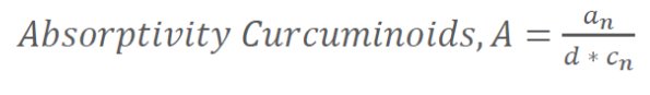 0.5 mL, 1 mL 2mL 原液转移到三个不同的 100mL 容量烧瓶中,用乙醇定量。对?.5 mL? mL? mL转移的原液,这些标准溶液分别含有 1.25?.5 5 mg/L 的姜黄素(根据确切重量而定)、/p>