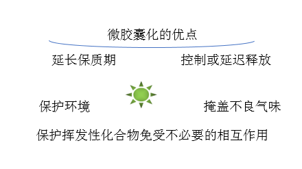 在食品和化妆品行业中,香精和香料化合物是很容易挥发的液体,通常对热、化学不稳定,对空气、光和辐射相当敏感。保护珍贵化合物的有效方法是将香精和香料封装到载体基质中。微囊化的优点如?所示。常用香精和香料微囊化的例子有鱼油、葵花籽油、薄荷油、柠檬油以及硫磺香精。因此,直径从亚微米到毫米不等的颗粒被称为微胶囊、/p>