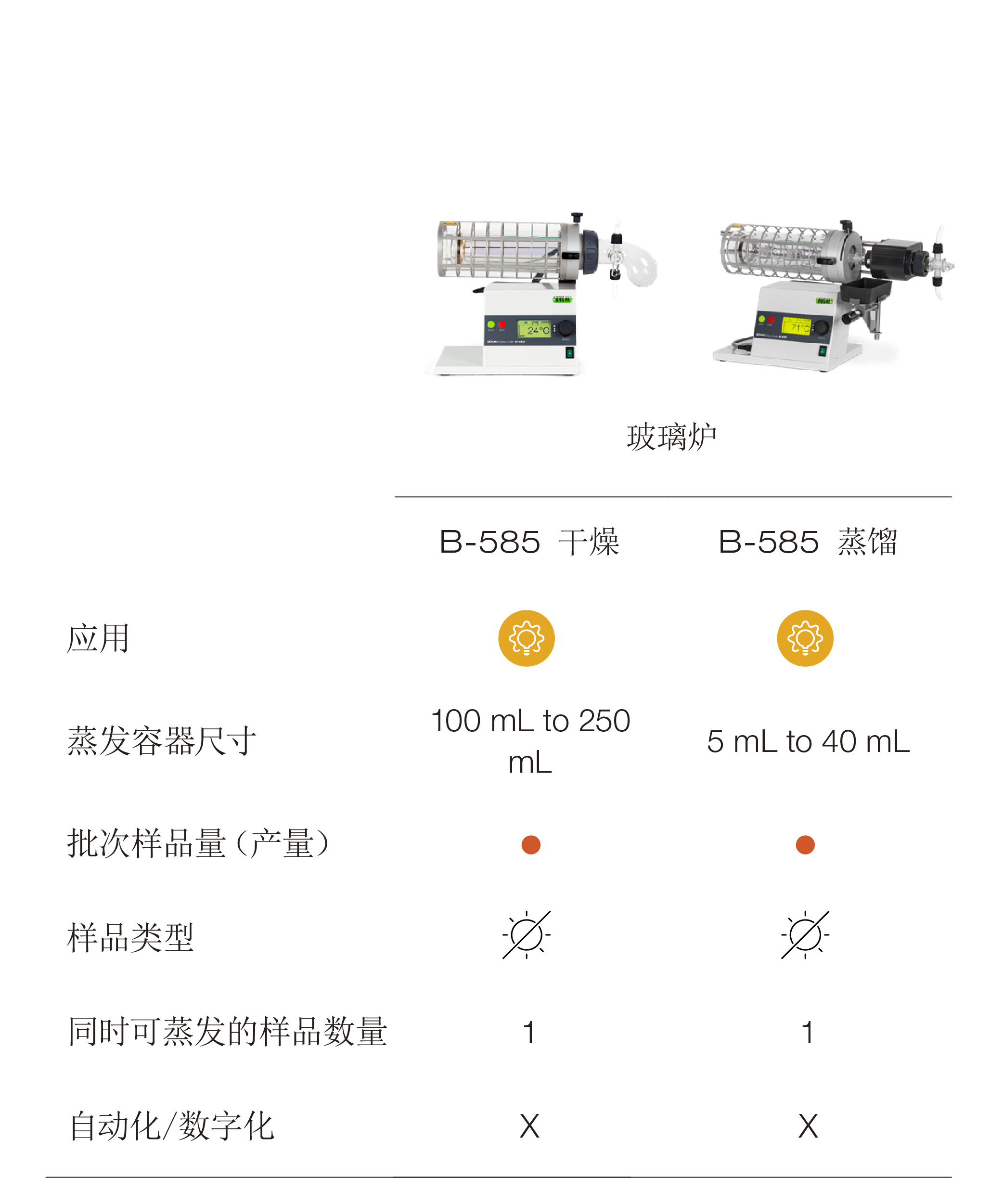 玻璃炉作为蒸发系统家族中最“小个子”的成员,样品处理量只有 5 mL 250m L,但同时也是整个家族中最“细心”的。得益于其小巧的体积和特殊的蒸发器皿,在操作和转移样品时,可以有效避免样品的损失。我们甚至可以将整个玻璃炉放入手套箱或者对内通入保护气体来避免样品的二次受潮和氧化。B-585 还有一个透明的加热管,温度可以达?nbsp; 300℃,可以一边调整温度一边观察样品的情况,因此非常适合材料、石油和化工等领域的应用场景、/p>