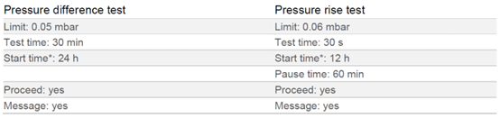 压力差测试设置极限压力为 0.050mbar,测试时 30 分钟。该试验在冷冻干燥过程开始时直接开始。对于压力升高测试,压力限制设置 0.060mbar,测试时 30 秒。第一次升压试验在冷冻干燥开 12 小时后进行, 60 分钟重复一次、/p>