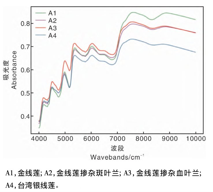 针对金线莲质量检测的传统方法主要有性状鉴定、显微鉴定、DNA 鉴定以及高效液相色谱等。这些检测手段尽管有较高分析精度,但通常也有耗时久、效率低、破坏样品且需要专业人员操作等弊端。而近红外光谱分析作为一种快速无损检测方法就非常适合鉴别金线莲的真伪、/p>