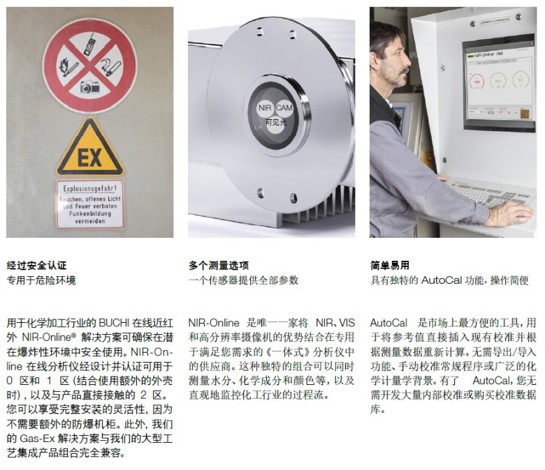 除以上应用案例外,步 NIR-online 在线近红还可以测定木材中的灰分,纤维素,颜色,木质素,水分等等,如需了解步琦在线近红外在化工行业的更多应用,请参登录瑞士步琦官方网页查看或者联系我们当地销售代表、/p>
