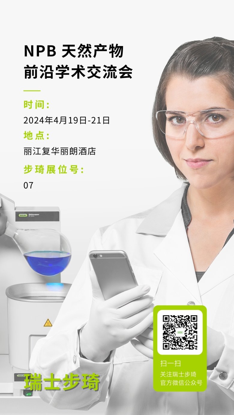 由中国科学院昆明植物研究所NPB编辑部联合云南省植物学会植物化学与植物天然药物专业委员会主办“NPB天然产物前沿学术交流会(第一届)暨编委会议”将?nbsp;2024??9?21?nbsp;?span style="text-decoration-line: underline; box-sizing: border-box;">云南丽江召开。本次论坛的主题为“天然产物研究前沿与创新”,交流近年来我国学者在天然产物化学及其相关领域的研究成果,就天然产物的发现新策略与新方法研究、重要活性天然产物的发现、合成与功能研究、创新天然药物研发、智能化时代天然产物创新研究的方向探索等研究动态与最新成果进行广泛的交流。届时步琦公司将携带旋转蒸发仪、制备色谱亮相展会现场,同时还有合成生物学整体解决方案,为大家带来相关最新技术与产品、/p>