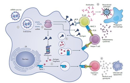 mRNA 脱离核内体进入细胞质后,被核糖体翻译成蛋白质。翻译的抗原蛋白可以通过几种方式刺激免疫系统、/p>