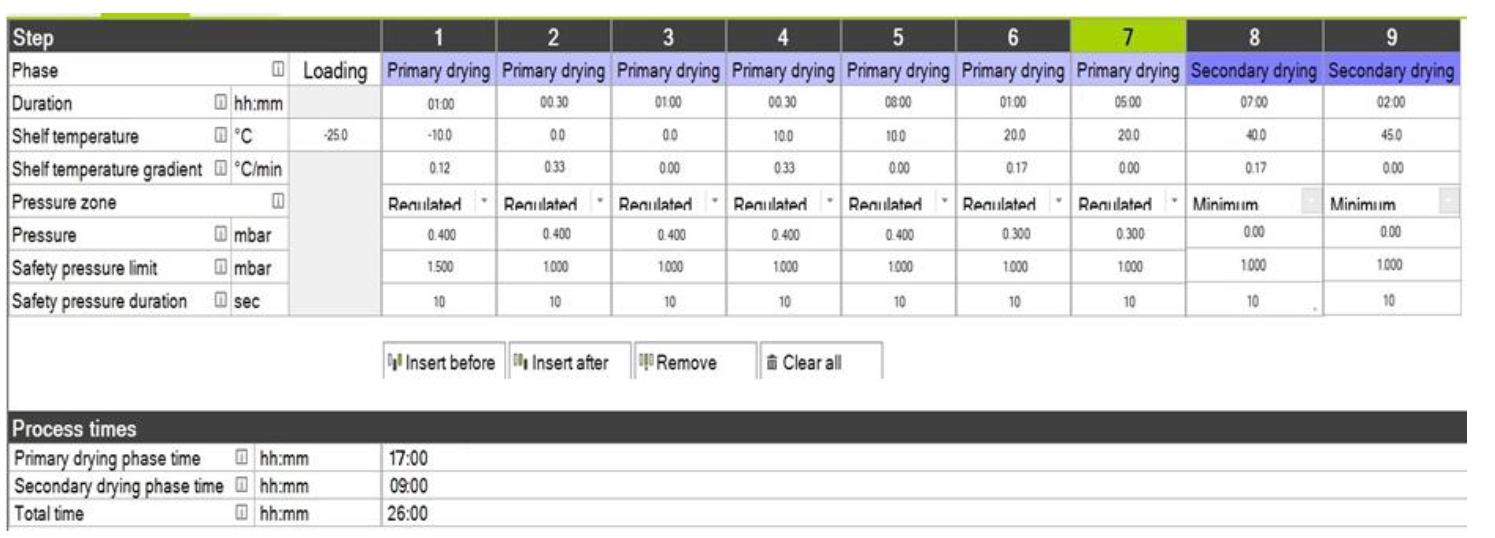 ▱/span>?:在Lyovapor 软件上设置的初级和次级干燥步骤参?/span>