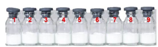 用体积移液管 3ml 5% 甘露醇水溶液 NaCl 溶液(50g/L)转移到西林瓶?每种溶液 70 ?。然后将样品放在一个不锈钢托盘上,并在 -40°C 的低温下冷冻一夜,也可以使 -20°C 的冰箱、/p>