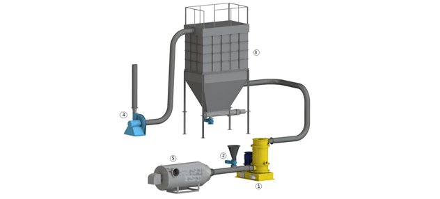 碟巢?/span>①是一种自风扫系统,物料通过负压气流进入系统,根据不同物料特性,物料按照实际空气流量通过变频控制计量或定量给料机②由气流带入磨机入口,加工完的产品由磨机出口气流方式进入脉冲布袋收尘器③进行产品收集,系统尾气可根据实际情况经系统引风机④进行排放或回入空气加热器。⑤当系统空气经空气加热器加热后,碟巢磨是一台高效的干燥机,其允许的进风温度可达450℃,产品干燥程度可根据要求调整磨机出口温度来控制,典型的磨机出口温度?5℃而产品含水率可控制在0.2%以下,最低可控制?.05%,滤饼、软泥或浆料可进行一次性操作同时实现干燥、粉?解聚), 出磨后的粒径分布可还原物料干燥前的初始粒径、/span>