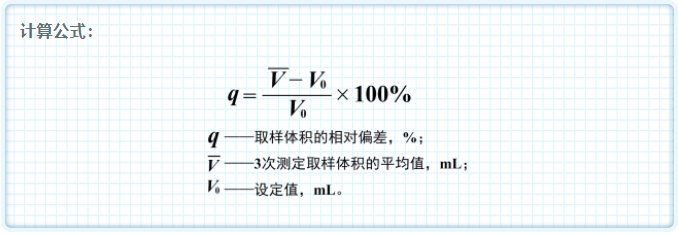 待仪器稳定后,取多于取样体积的微粒检查用水置于取样杯中,称定重量,通过取样器由取样杯中量取一定体积的微粒检查用水后,再次称定重量。以两次称定的重量之差计算取样体积。连续测?次,每次测得体积与量取体积的示值之差应在?%以内。测定体积的平均值与量取体积的示值之差应在?%以内。也可釆用其他适宜的方法校准,结果应符合上述规定、/p>