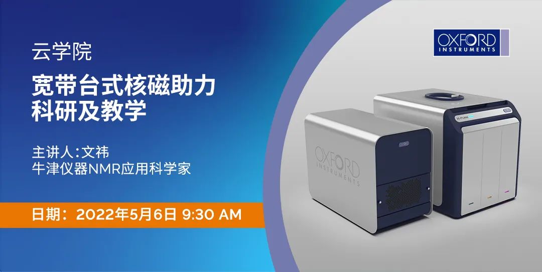 5?日上午,牛津仪器NMR应用科学家文祎博士将带来“宽带台式核磁助力科研及教学”的网络专题报告。报告将对X-Pulse的宽带功能特性进行重点解读,并分享台式核磁在科研及教学领域的应用解决方案,期待您的加入!