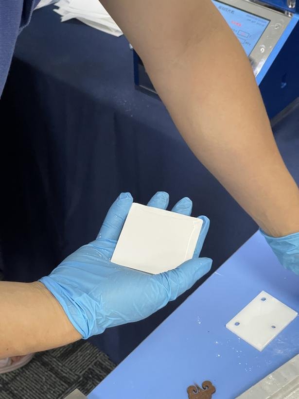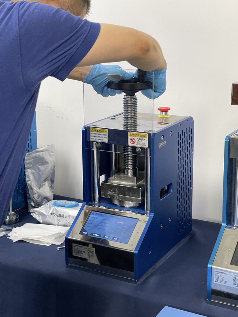 开始制样,客户反应之前使用的是在其他供应商处采购的手动款压片机,来配合客户的方形模具制样,其效果很不理想。这次来访想体验一下我司的自动压片机制样效果、/span>