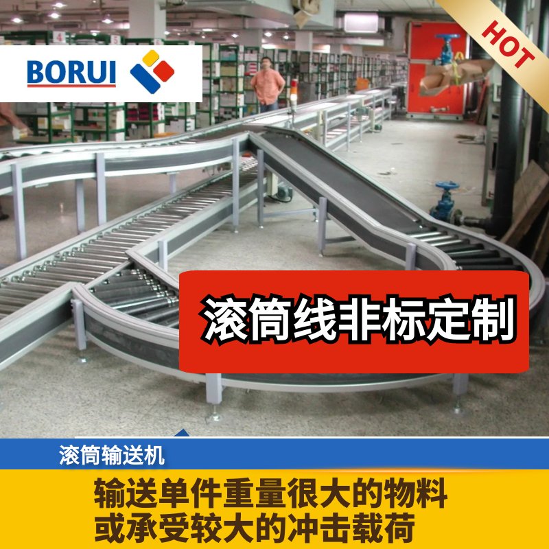 2.结构形式多样,滚筒式输送机按驱动方式可分为动力滚筒线和无动力滚筒线,按布置形式可分为水平输送滚筒线、倾斜输送滚筒线和转弯输送滚筒线。还可按客户要求特殊设计,以满足各类客户的各种要求、/p>