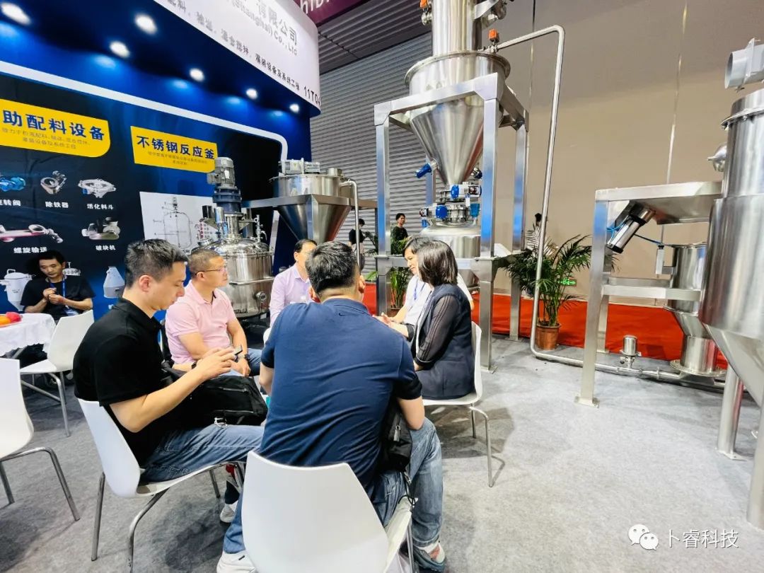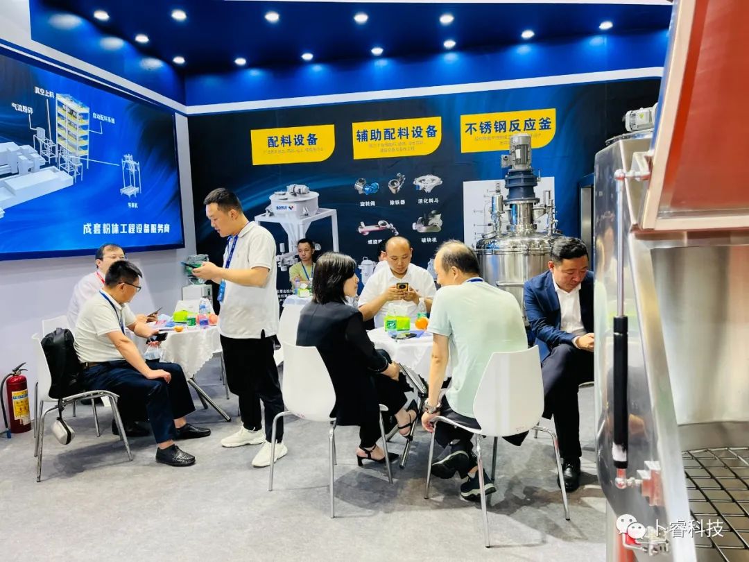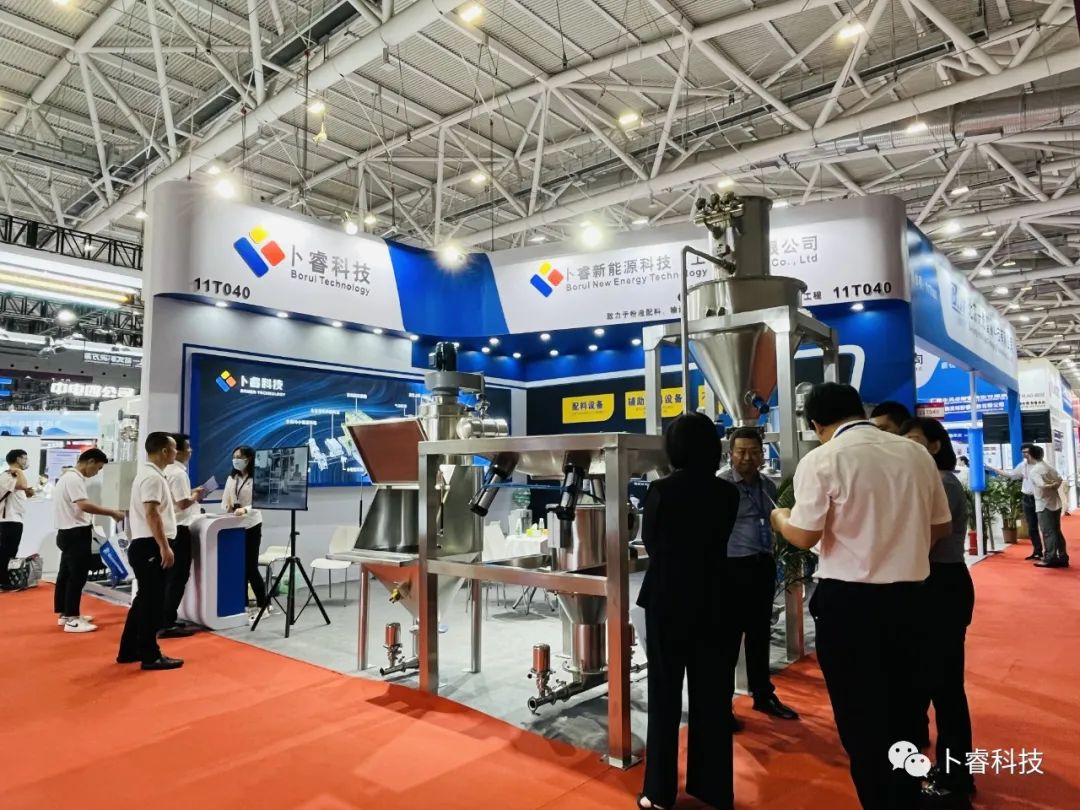 此次展馆现场,卜睿科技重点展示了新能源材料产线设备中的小袋投料站、吨袋投料站、真空上料设备、压送仓、储料仓、不锈钢反应?..