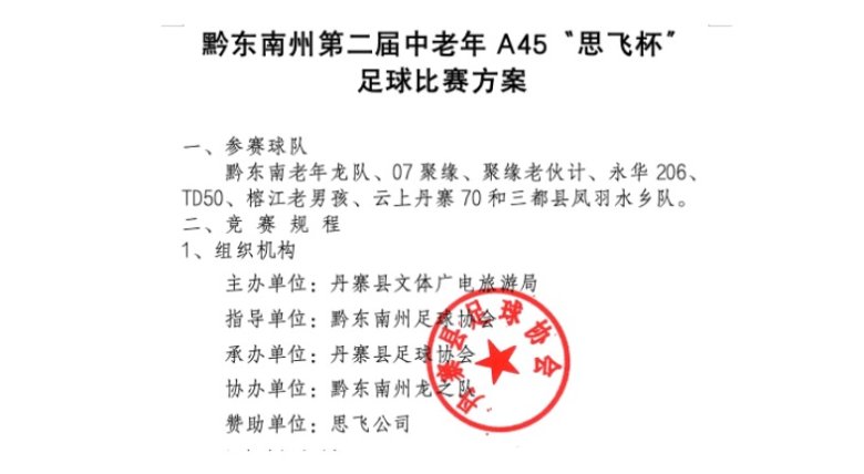 “富而有 富而有 富而有爱”,贵州思飞新材有限公司在自身健康发展同时,积极参与乡村文化建设、助力乡村振兴、促进共同富裕。公司成立之初就时刻践行‛/span>义利兼顾、以义为先,自强不息、止于至善”企业精神!切实履行社会责任及回报社会的责任担当。因此,迎来了由思飞新材公司赞助、黔东南州龙之队主办、丹寨县足球协会承办的贵州黔东南州第二届“思飞杯”十一人制足球赛将 5 19 日在丹寨县足球场正式开赛、/span>