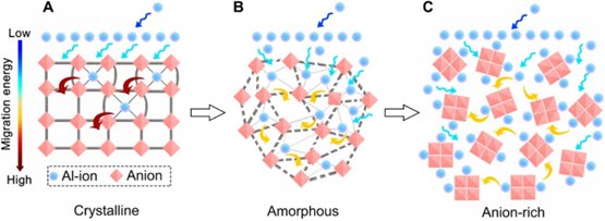 Al3+与密排晶体结构之间的强é™ç”µç›¸äº’作用,以åŠä¼ ç»Ÿé˜³ç¦»åæ°§åŒ–è¿˜åŽŸæ£æžçš„å•电å转移能力,使得å‘展高性能å¯å……电é“ç”µæ± æžå…·æŒ‘æˆ˜æ€§ã€‚ä¸ºäº†æ‰“ç ´å¤šä»·é‡‘å±žç¦»åå˜å‚¨ä¸æ™¶æ€æ£æžå®¹é‡ä½Žã€å¯é€†æ€§å·®çš„问题,ä¸ç§‘院物ç†ç ”ç©¶æ‰€ç´¢éŽæ•ã€ç¦¹ä¹ è°¦ç ”ç©¶å‘˜æå‡ºäº†ä¸€ç§æ–°çš„éžæ™¶åŒ–和阴离å富集ç–略,ä¸ä»…å¯ä»¥åˆ©ç”¨éžæ™¶æ€ç»“构的优点æ¥å¢žå¼ºå˜å‚¨ä½ç‚¹å’Œå›ºæ€ç¦»å扩散,而且实现了通过引入é¢å¤–çš„é˜´ç¦»åæ°§åŒ–还原ä¸å¿ƒï¼Œæ¥å¢žå¼ºå¤šç”µå的局部转移。ã€ç ”ç©¶è¿‡ç¨‹ã€‘ç ”ç©µü/p>