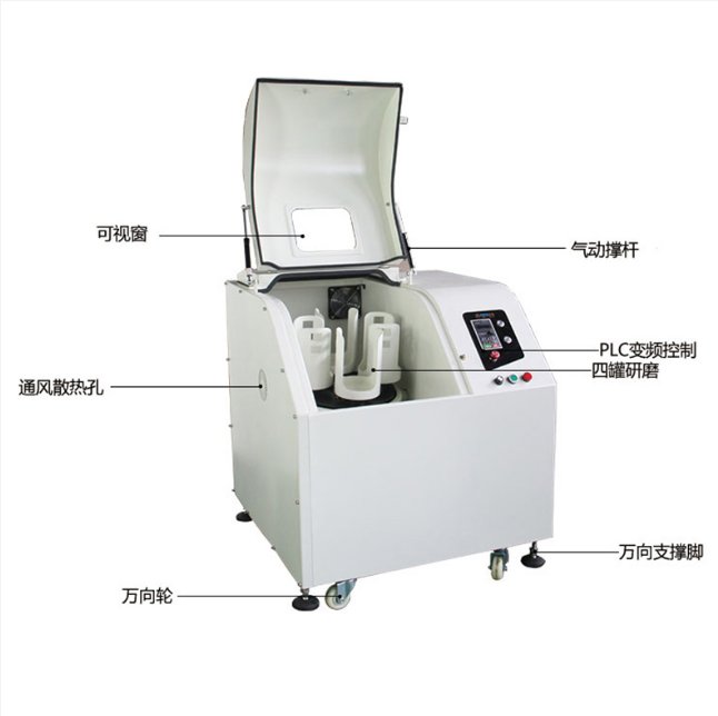 1、通常我们在做实验使用球磨机时,有时球磨罐运转时会容易移动,导致此现象百分之八十是滚轴两端间距不一致造成的的,我们可以通过手轮细微匀速调节单边间距,方便快速解决球磨罐容易跑的现象、/p>