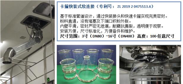 粉体软连接广泛用于粉体输送系统中,相对于机器设备或者系统来说,其价值并不高。然而其对系统的安全稳定运行却起着十分重要的作用,轻则导致粉尘泄漏污染、产品损失,重则引起设备停机甚至发生静电危害导致严重后果。那么,粉体软连接该怎么样进行选用呢?粉体软连接的选用包含材料的选用和安装形式的选用。一、粉体软连接材料的选用,主要和所应用的工况条件有关,主要包括?、所输送物料的特性温度、磨损性、腐蚀性、易燃性、/p>